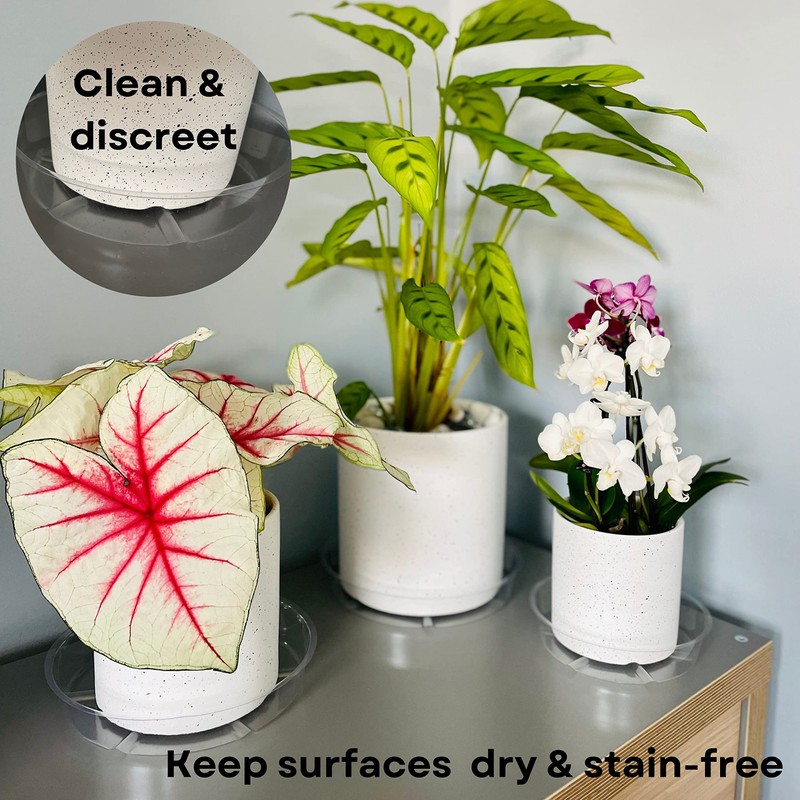 - NO MORE DRIPS - Protect your household surfaces with these great drip trays. The saucers have a 1.4” (3.5cm) depth so can hold a substantial amount of water. Never worry about staining your furniture! The saucers have raised grooves to improve drainage. Perfect for any surface - indoor or outdoors.