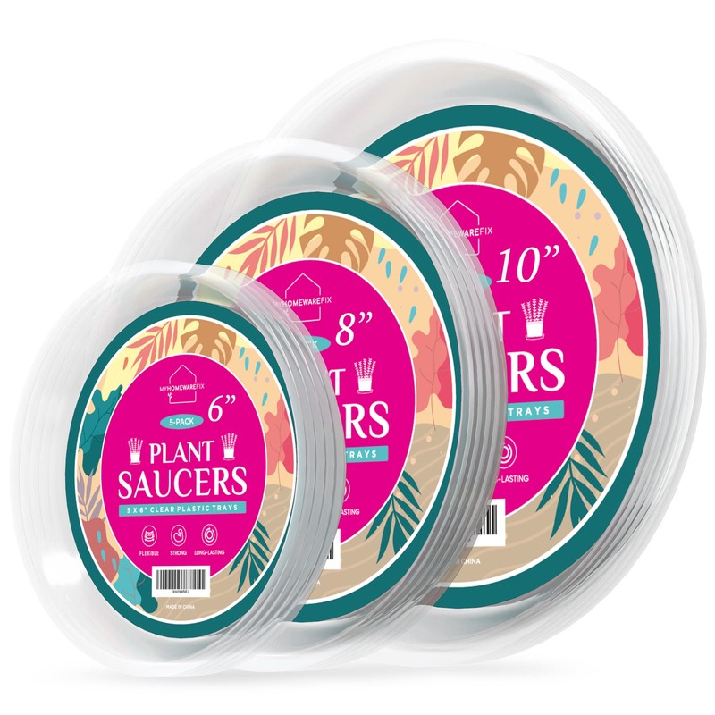 My Homeware Fix 15-Pack Clear Plastic Plant Pot Saucer to Prevent Water Spills – Drip Trays for Indoors and Outdoors – Saucers are 3 Sizes – 6, 8, and 10 inches