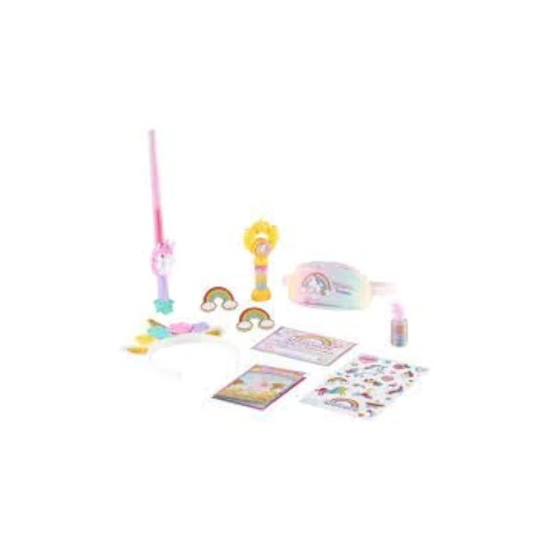 - Set includes unicorn headband for doll, bottle of glitter dust, trophy, training wand, Certificate of Achievement, sticker sheet, training manual, two rainbow treats, and a waist bag for holding the treats!