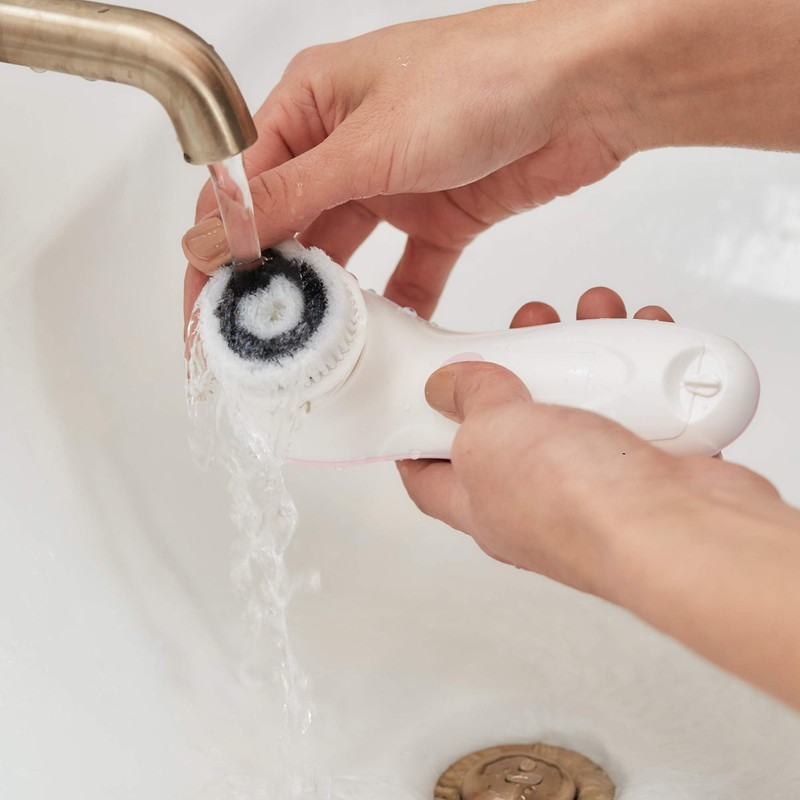 - CARE INSTRUCTION: Rinse your brush head thoroughly after each use. If it is discolored from makeup or debris, clean with warm, soapy water and allow to dry. Clean the base and handle once a week with a slightly damp cloth. Replace brush heads every 2-3 months. Daily Cleansing, Exfoliating, and Silicone Brush Heads are available.