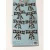 NEW MY LITTLE CHRISTMAS PACKAGE OF EIGHT (8) MINI BUFFALO CHECK BLACK AND WHITE BOWS.  EACH MEASURES 2" X 2".  NEW IN THE UNOPENED PACKAGE.  PERFECT FOR TREE, DOLLHOUSE, CRAFTS, TRAIN LAYOUTS, TIERED TRAYS, LANTERNS AND VILLAGES.