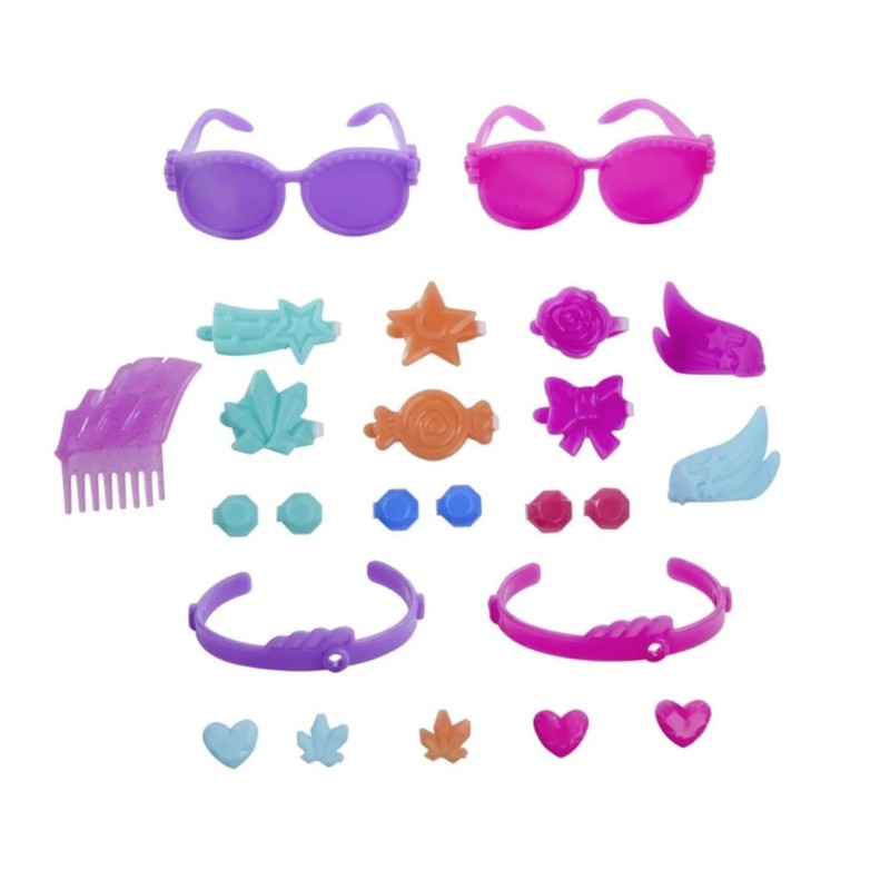 - 26 PIECES The Sparkling Generations collection includes 2 ponies and 24 fashion and hair accessories, such as a comb, mane clips and sunglasses.