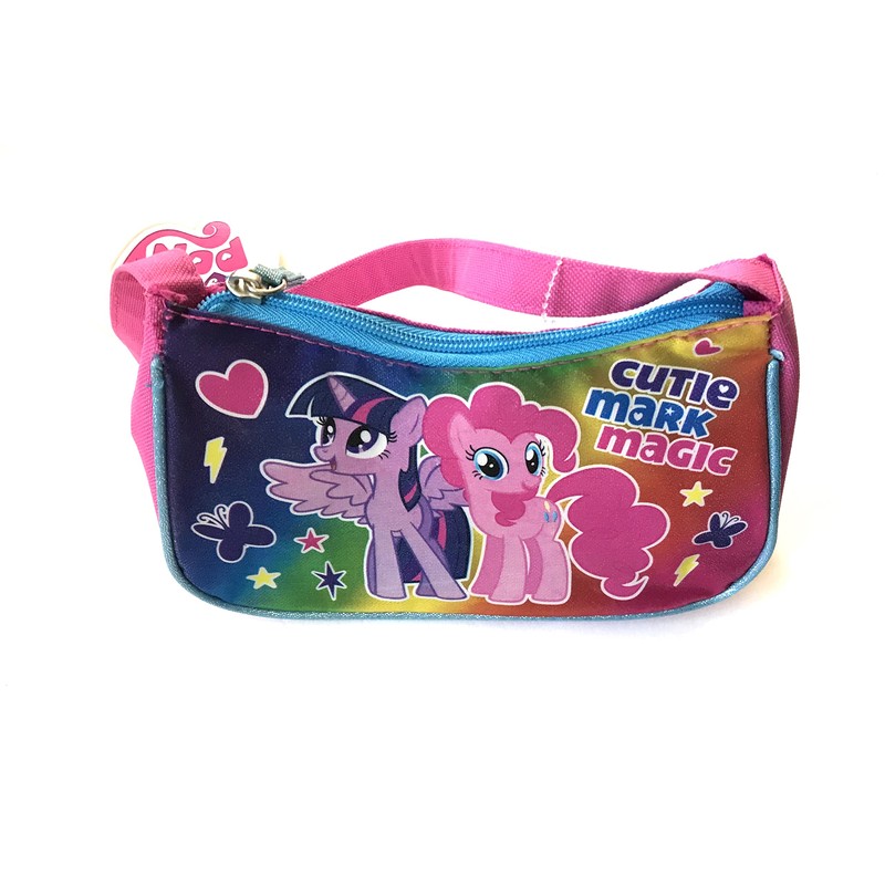 - Features: Two of your favorite Pinkie Piel, Princess Twiligh Sparkle against a colorful background. Pink strap and zip top closure.