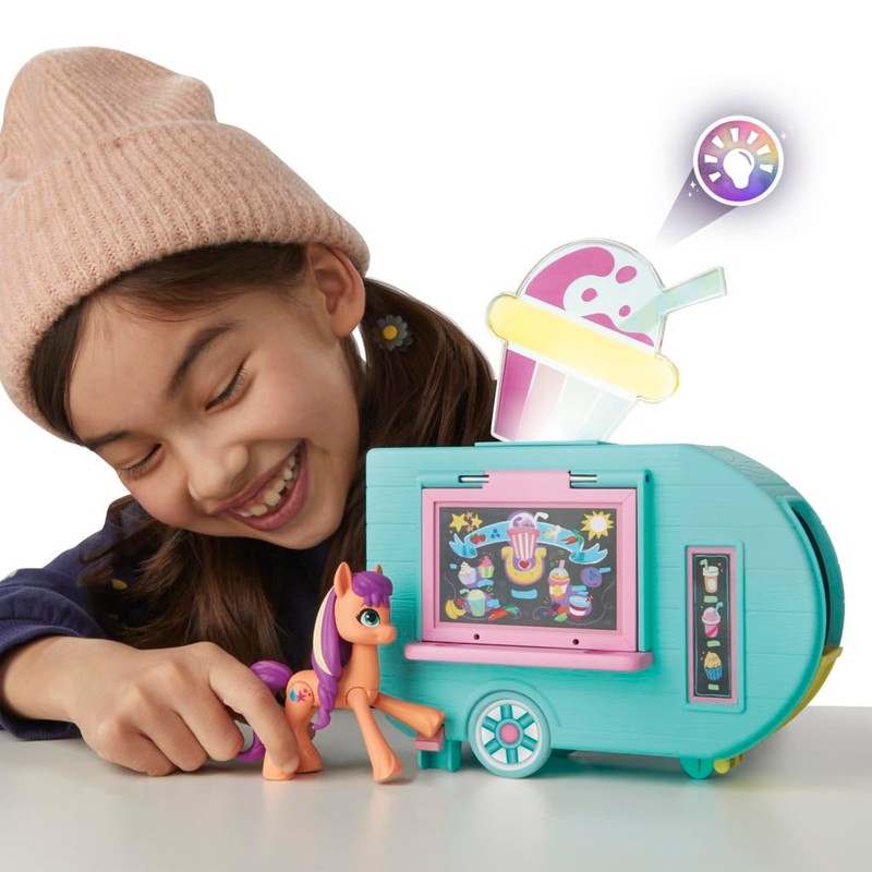 - CAMIÓN DE BATIDOS 2 EN 1: ¡El set de juguete My Little Pony Camión de batidos se convierte de vehículo en minicocina! Inspirado en la serie My Little Pony: Deja tu marca