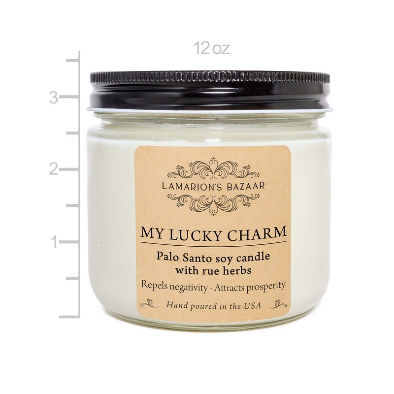 My Lucky Charm - Cleansing Palo Santo with Rue (Ruda) Herbs - Large Candle for Healing, Good Luck and Protection - 12 oz. Soy Candle in a Kraft Box