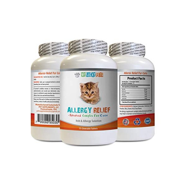 MY LUCKY PETS LLC cat Allergy Remover - CAT Allergy Relief Complex - Premium Itch Solution - Immune Booster - Nettle for Cats - 1 Bottle (75 Chewable Tablets)