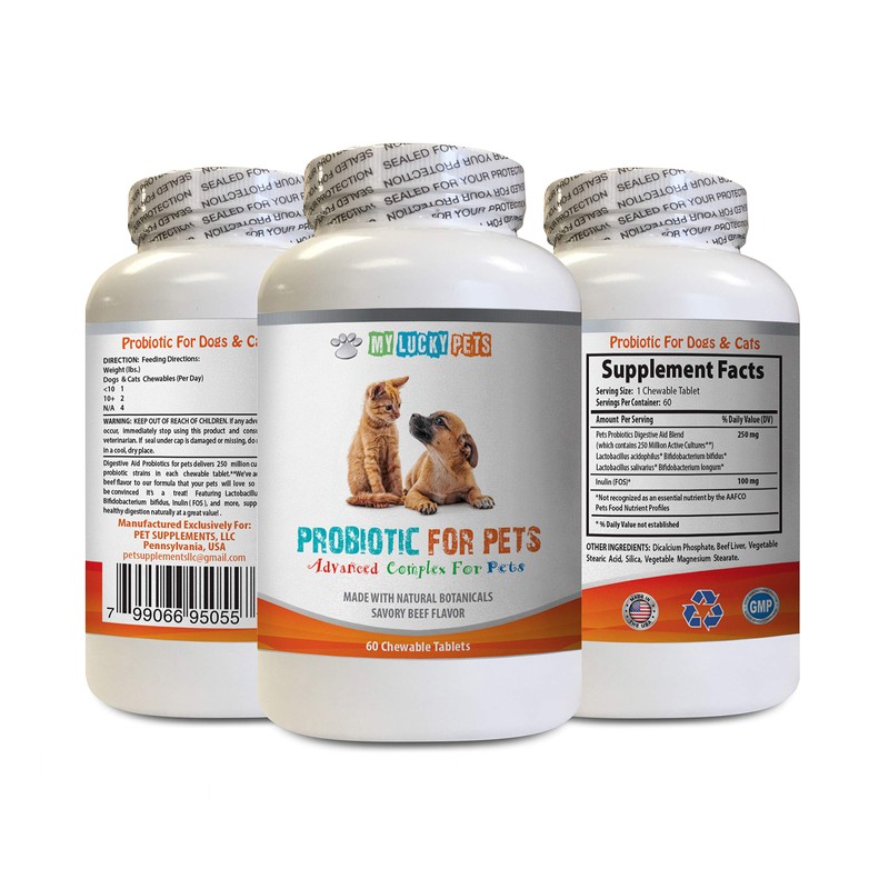 - #1 PROBIOTICS FOR ANY DOG OR CAT: Bacteria and other microbiota within the pets intestinal tract significantly influence your pet’s physical and psychological health. Our supplement was made to make sure your pets health is in check and performing at its best. So if your pet needs a little of probiotics in his life our supplement can do the job.