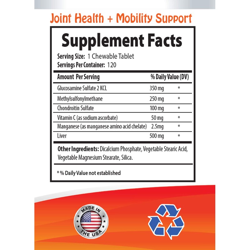 • CHONDROITIN FOR DOGS CARTILAGE HEALTH: Cartilage acts as a cushion between the bones in a joint and provides much of its resistance to compression. Chondroitin is an important structural component of cartilage and is part of a large protein molecule that gives cartilage elasticity. This provides help to your dog with aches and pains.