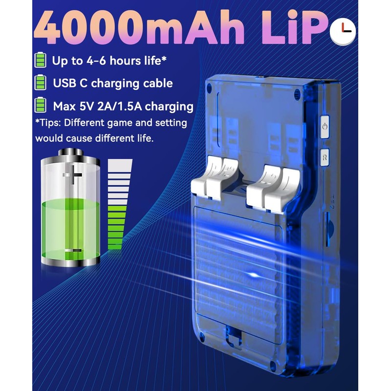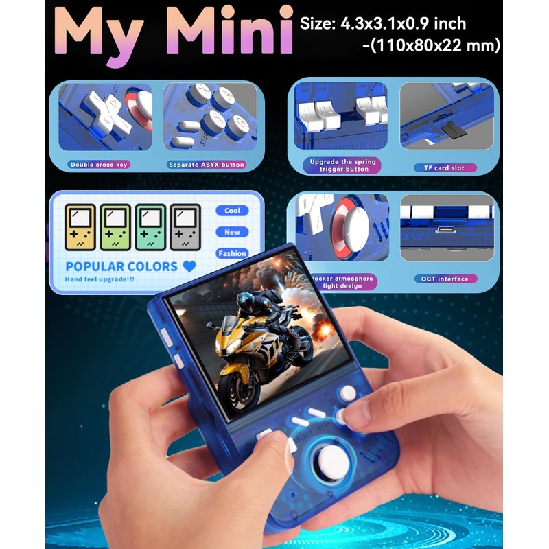My Mini Handheld Game Console 3.5-in 640*480 IPS OCA Screen RK3326 4000mAh mymini with Portable Case Blue Transparent-64GBVer.