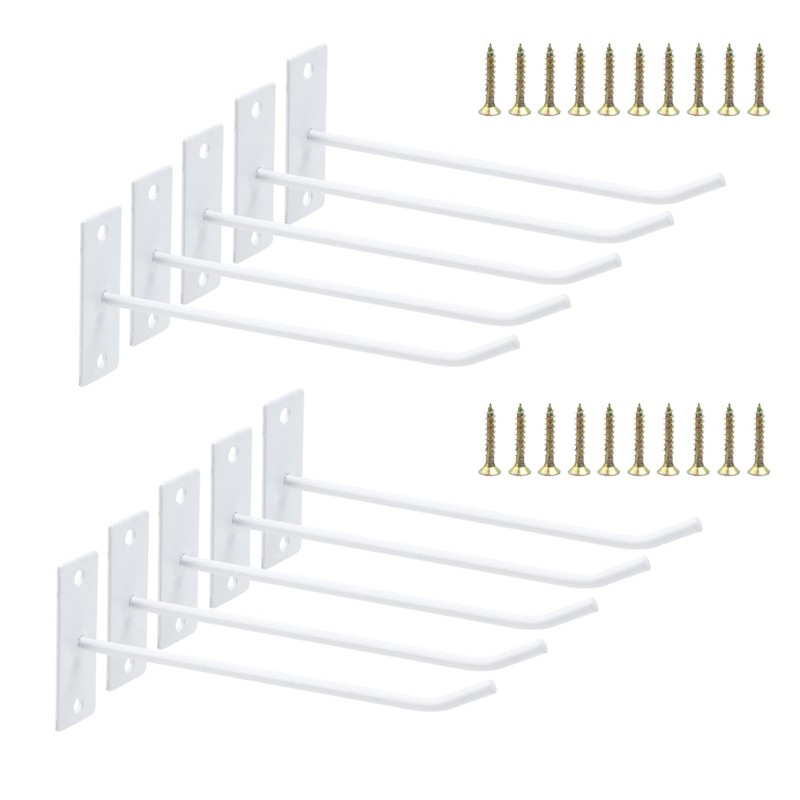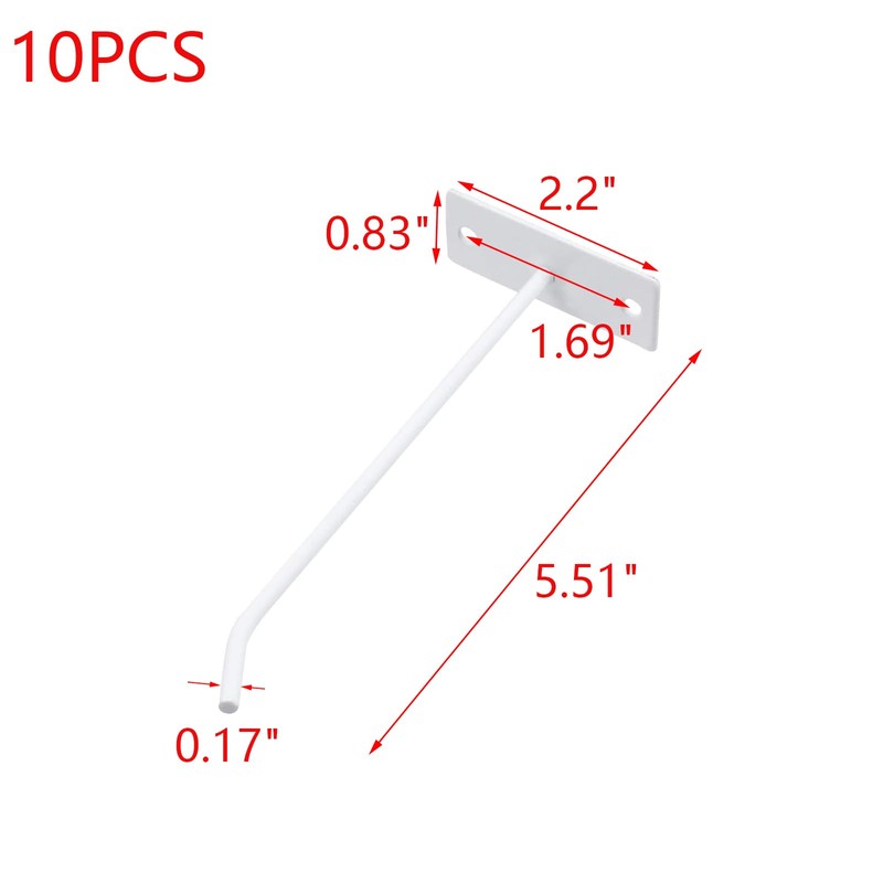 MY MIRONEY 10PCS 5.51" White Board Mounted Hook Heavy Duty Wall Mounted Hook Hardware Iron Garage Hooks Home Storage Organizer Hanger for Garage Shop Retail Home Office Store Display