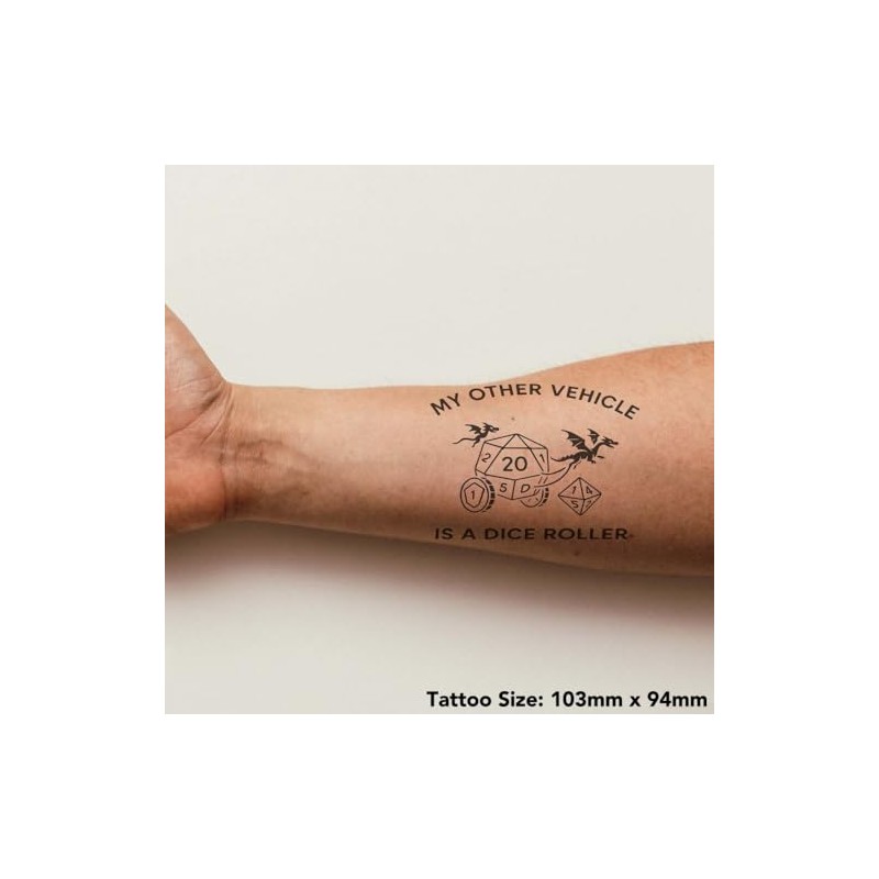 'My Other Vehicle is a Dice Roller' Temporary Tattoo - Water Resistant, Skin-Safe, Non-Toxic Transfer (TO00085767)