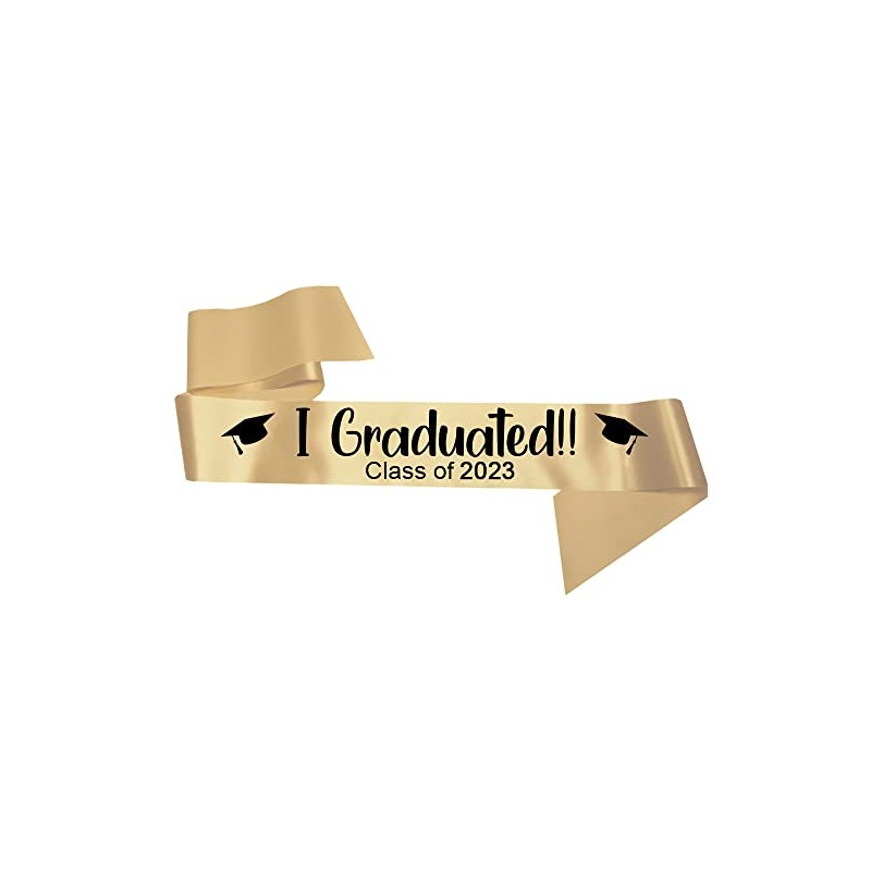 I Graduated!! 2023 sash Finally, you graduated! Wear it proudly on your graduation day. It comes in many colours so you'll be sure to match it with your outfit! Get matching sashes to wear with all your friends. Available in many different ribbon colours which you can see on our additional photos, and font colours (choose from black, silver, gold or rose gold). Handmade in our studio in Lancashire