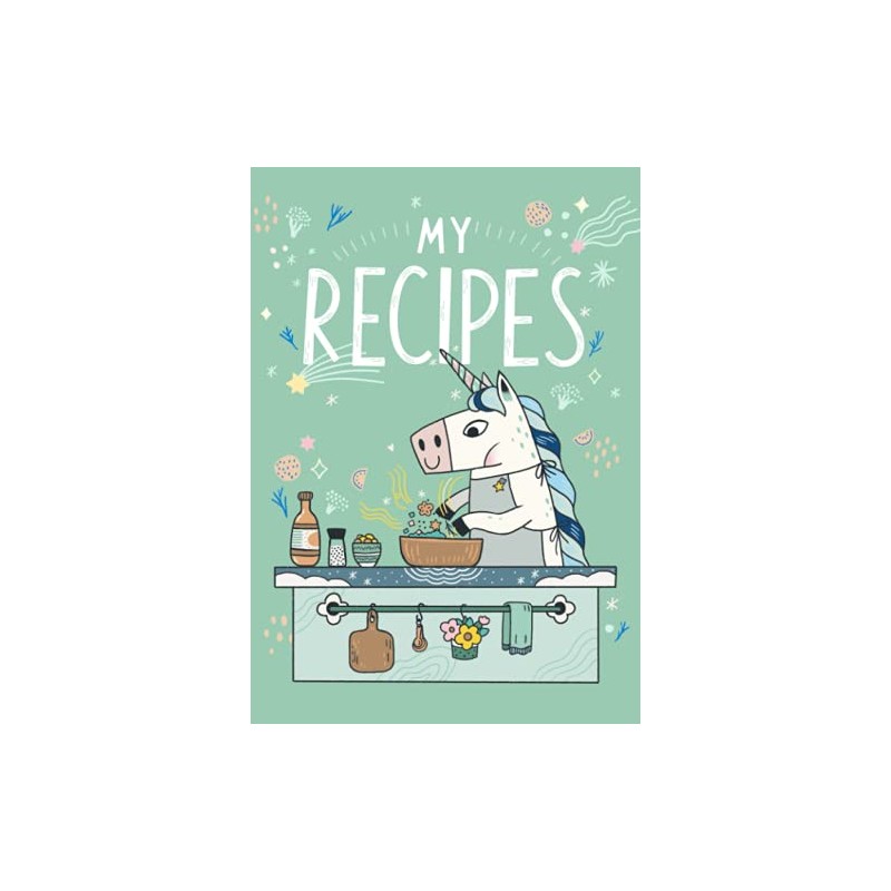 MY RECIPES: Unicorn recipe notebook, 7"x10", 120 pages (Mint Cover) (UNICORN COOKING JOURNAL TO WRITE IN)