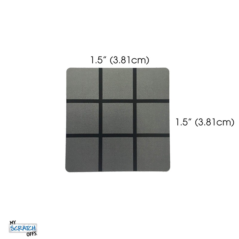 - Silver Square Scratch Off Sticker Labels; 1.5 inches by 1.5 inches - Black Tic-Tac-Toe Grid Lines