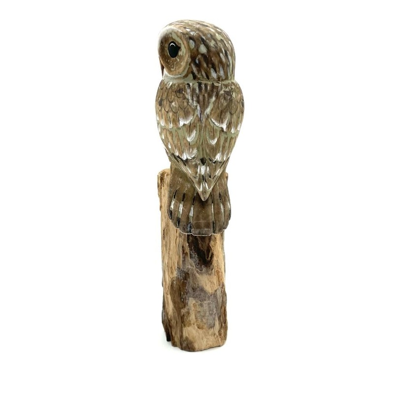 My Square Mile White Owl Ornament | Wooden Hand Carved Bird | Tree Stump Painted Great British Birds Indoor/Outdoor Garden Ornament
