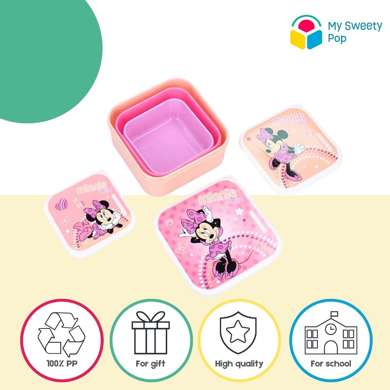 My sweety pop - Set of 3 Minnie Mouse snack boxes - Lunch box - For children - Nursery - Kindergarten - School - Holiday - Meal - 11.5 cm