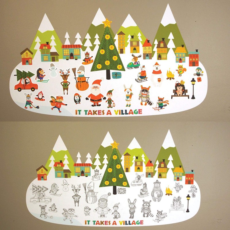 • FUN CHRISTMAS COUNTDOWN: Adorable! All the little ones in your life will love this fun and unique advent calendar to countdown the days until Christmas. The ‘It Takes a Village’ Advent Calendar depicts a snowy village scene filled with cute animal critters, Santa, snowman, elves, Christmas tree and more. Each day add a sticker to the numbered scene. By Christmas Eve, the colorful scene will be complete!