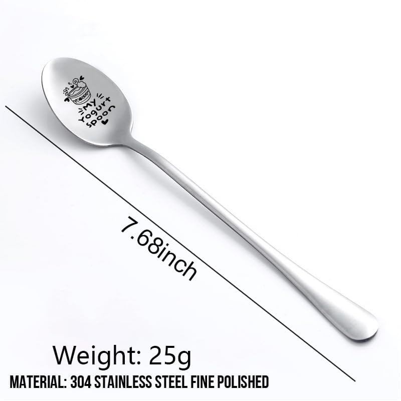 - Keepsake Gifts for Daughter Son Dad Mum: The yogurt spoon is great christmas gifts for daughter son, maybe your family loves yogurt, imagine how perfect it would be for your family to eat dessert with yogurt spoon, the funny engraved spoons are can be as christmas gifts for dad mum, graduation gifts for son daughter, birthday gifts for father mother, retirement gifts for mum dad