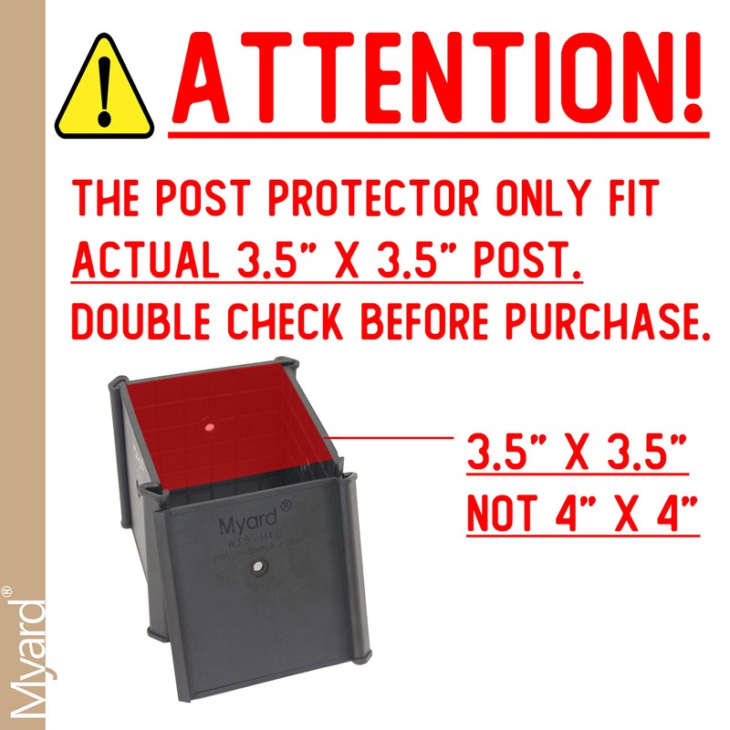 - ★ UNIVERSAL FOR ANY PLACE: Myard post protectors (also known as post sleeves, guards, fence armor, or shields) fit around any 4"x4" post (actual size 3.5"x3.5")—whether wood, metal, or vinyl— fit for the posts of decks, fences, mailboxes, or little free libraries.