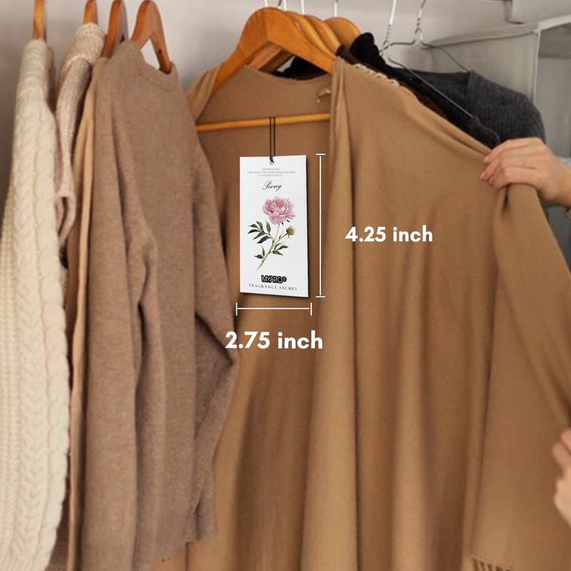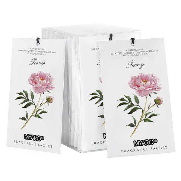 - MYARO Peony sachet bags: Includes 12 scented sachets (each bag size: 4.13 inch x 2.76 inch). Our natural fragrance will take you on a journey with the Penoy fresh scents sachet packets