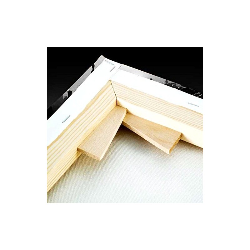 - Handmade: canvas stretched on a wooden stretcher frame, includes hooks ready to hang