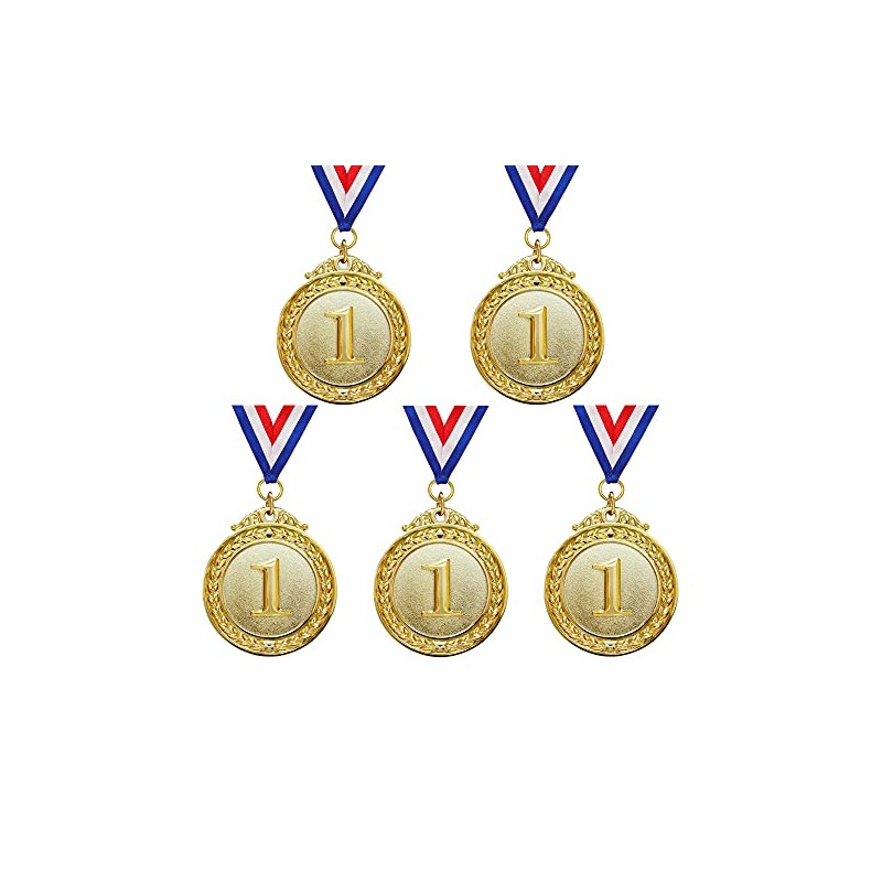 Myartte 5-Pack Gold Medal Set - Olympic Style Winner Award Medals for Sports, Competitions, Spelling Bees, Party Favors, 50mm in Diameter with 80mm Ribbon