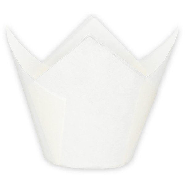MyBakning Jumbo Extra Large size White Tulip Baking Cups 2-1/4"(Base diameter) x 3-3/4"(Wall height) Greaseproof paper baking cupcake Muffin liners, Case of 130 pcs