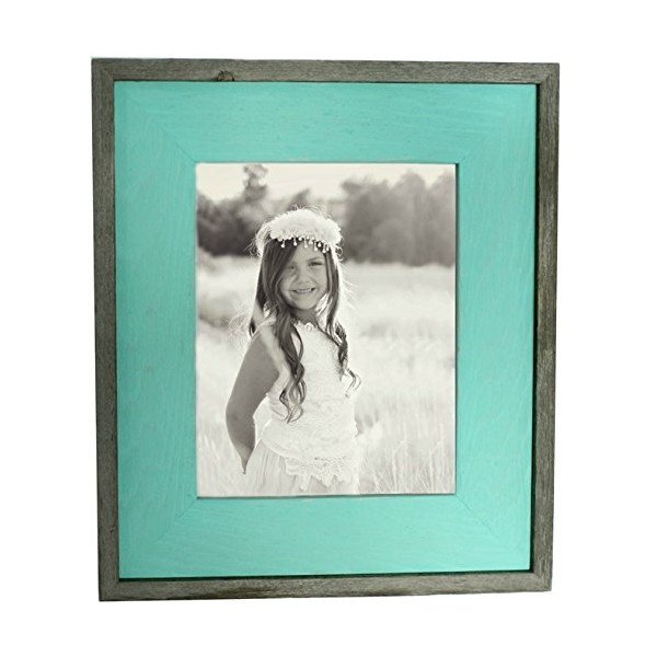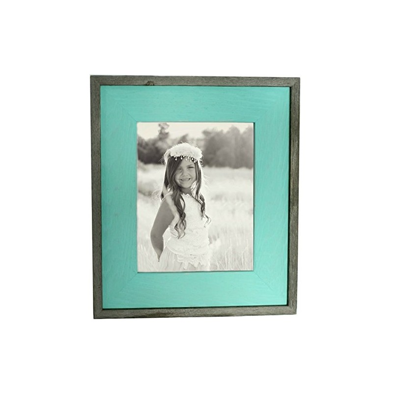 MyBarnWoodFrames - Color Washed Reclaimed Barn Wood Picture Frame, Mint Wash with Natural Border