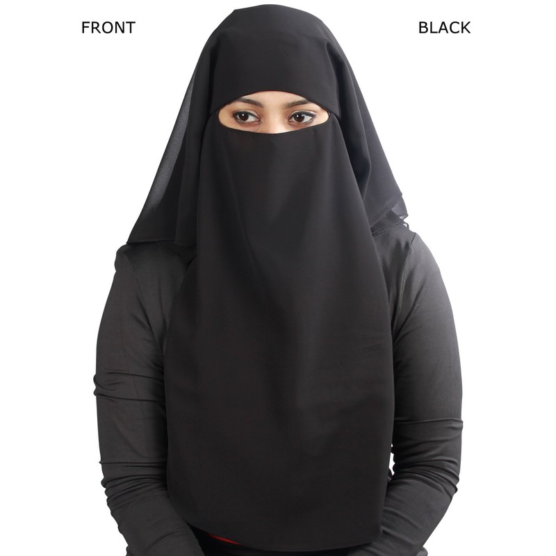 MyBatua 3 Layers Saudi Niqab In Breathable Black Georgette, Face Veil NQ-003