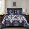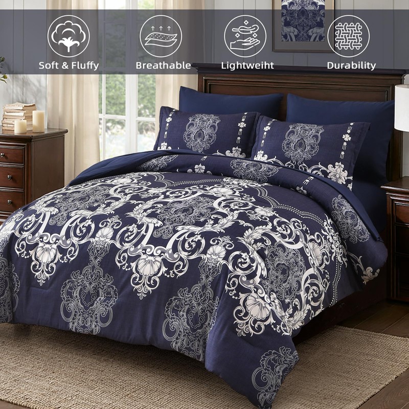 - [Unique Damask Floral Design]: This king comforter set is made of unique damask medallion pattern, combined with the navy blue background, making this comforter exudes style and luxury, will be a good artistic home bedding decoration and suitable for all ages.