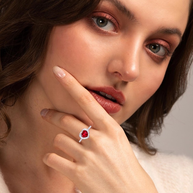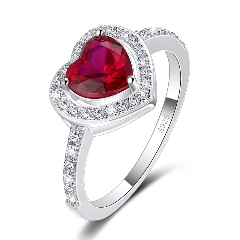 MYBELLNA Promise Ring for Your 925 Sterling Silver Created Ruby Blue Sapphire Emerald Diamond Heart Promise Wedding Engagement Ring for Wife Girlfriend Your Anniversary, Precious metal, Cubic Zirconia
