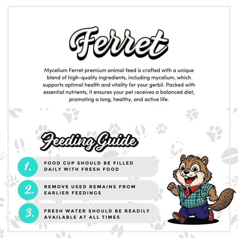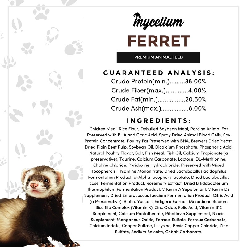 - Optimal Nutrition: Mycelium's formula is enriched with a balanced mix of vitamins, minerals, and fiber, perfect for supporting the full spectrum of your ferrets' dietary needs.