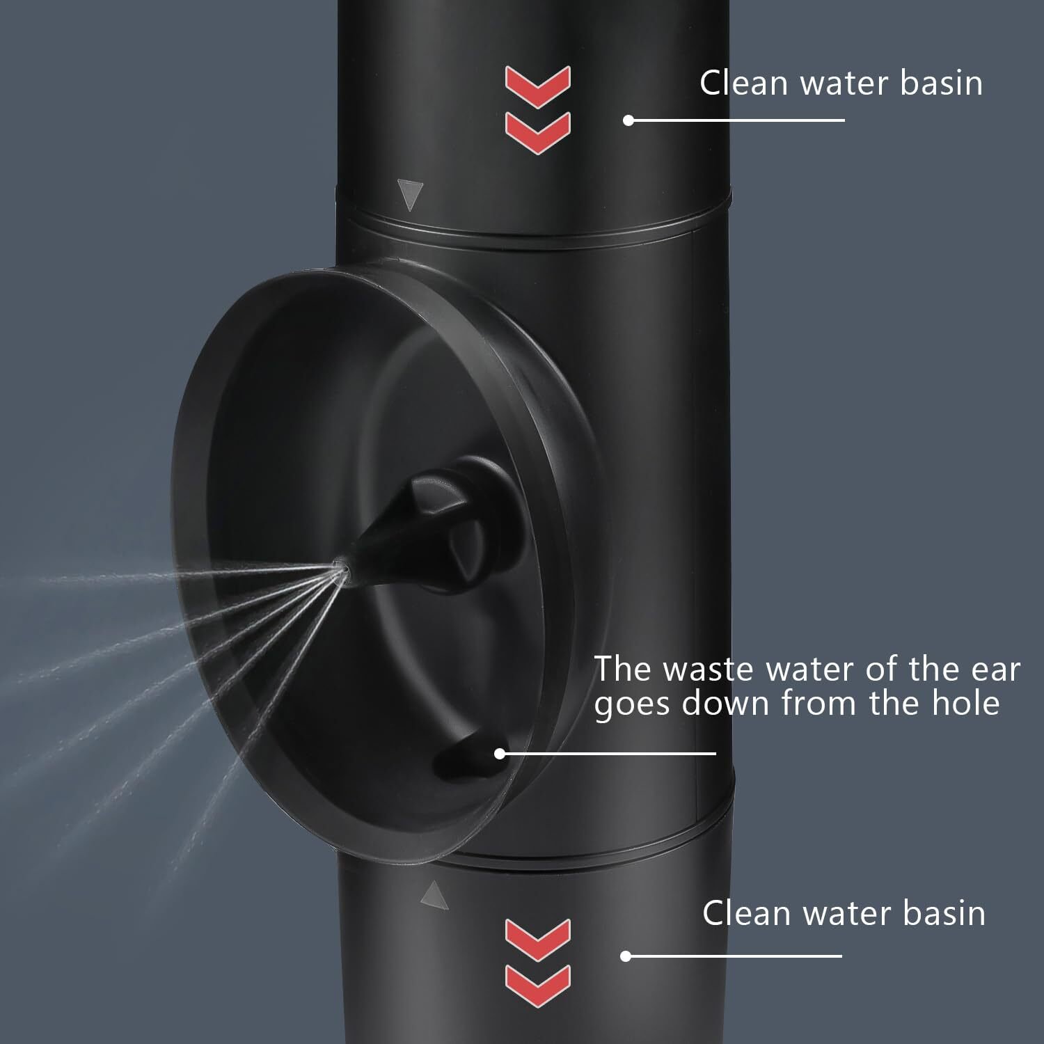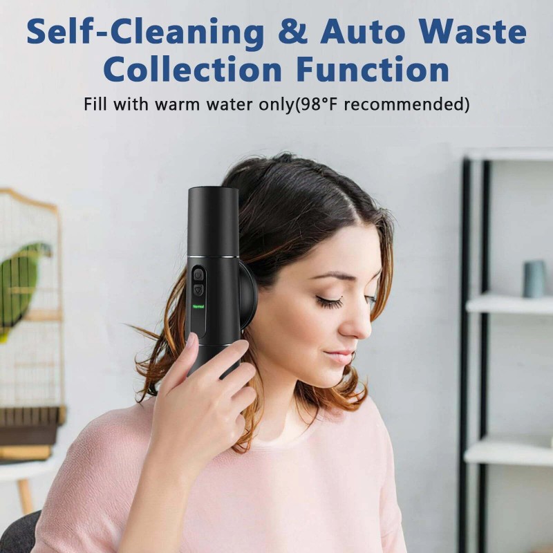 - 【Integrated Dual Basin Design】: Electric ear wax removal kit is equipped with two water basins, one for cleaning water and one for dirty water collection. Self-cleaning & Auto dirty water collection function makes sure that you can just sit in the living room and clean your ears without getting your clothes wet. No need to come with an extra dirty water collection basin and cleaning hoses or accessories.