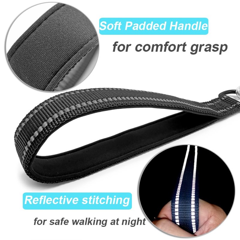 - Soft Padded & Reflective Nylon Handle: Chew proof leash with comfortable soft padded handle to ensure an comfortable grip and protects your hands even dog pulls. Reflective threading through the full handles enhances super high visibility to keep safe at night.