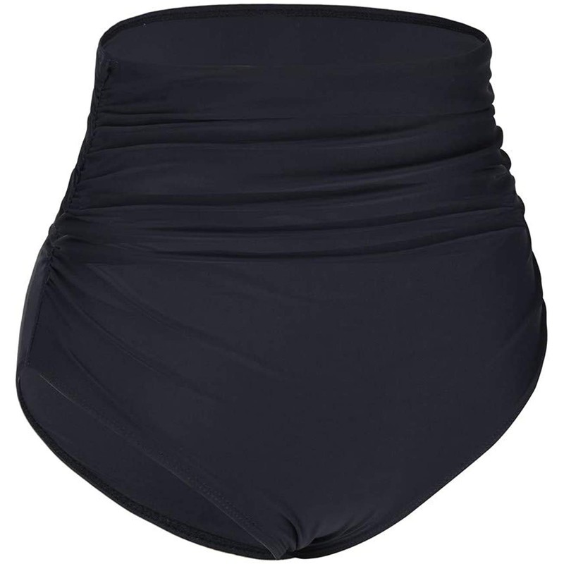 Mycoco Women's High Waisted Bathing Bikini Bottom Shirred Swim Shorts 10 Black