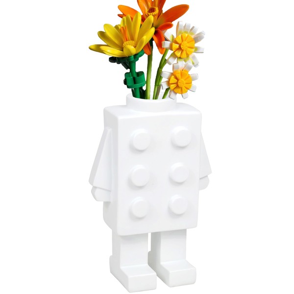 MYFLOCY Building Block Vase for Flower Decor Cute Bouquet Decoration Cool Resin Building Vase Gift Unique Vase (White)