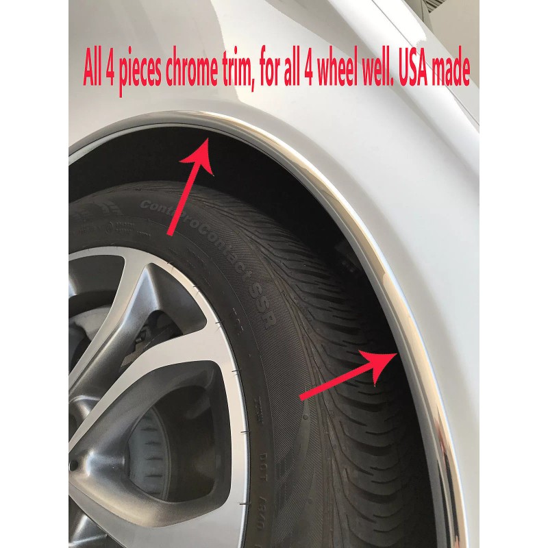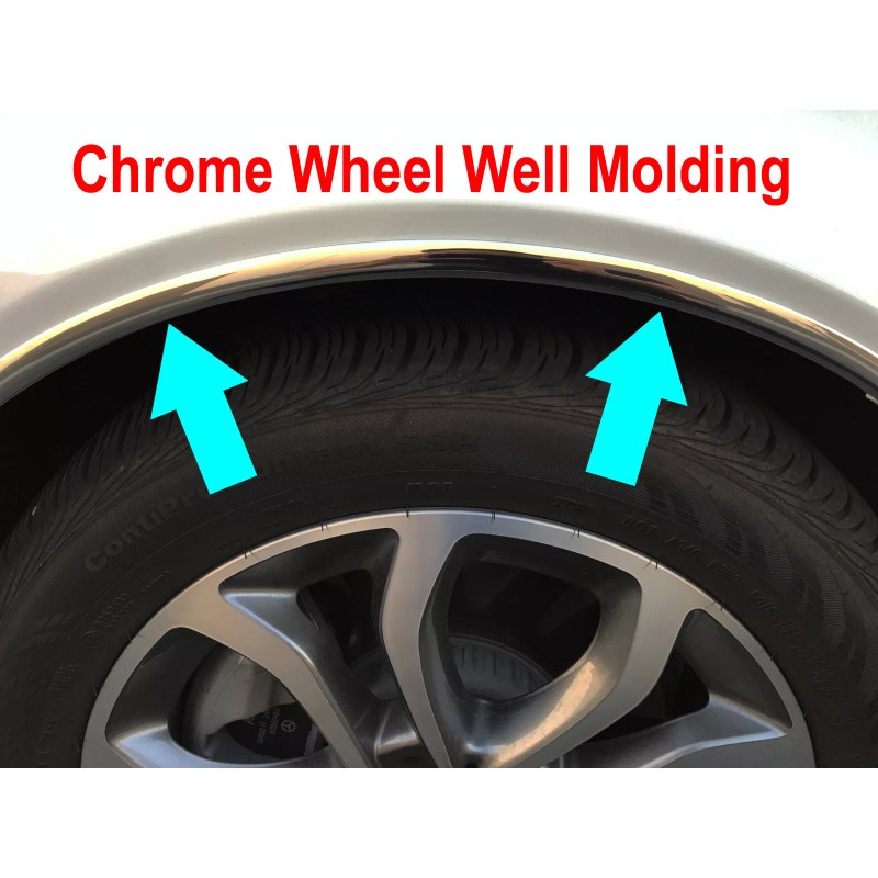 This package will included: - (4) pieces chrome mirror shine molding trim to protect all 4 of your vehicle's wheel well. This can prevent from dings and scratch. And looks elegance and classy to dress up all 4 wheel well area. Each measure as 5/8'' inch wide by six feet (seventy two" inch) long. - Detailed instruction for easy installation. Description: This molding is made of a flexible chrome plastic trim that are durable for all weather conditions. Installation is very easy, anyone can do it in about 20 minutes. ADDITIONAL TRIMMING/CUTTING is required. This can be done with scissors or knife. This trim piece are backed with 3M adhesive so installation is very easy. No modification on your vehicle, no screws or drilling.