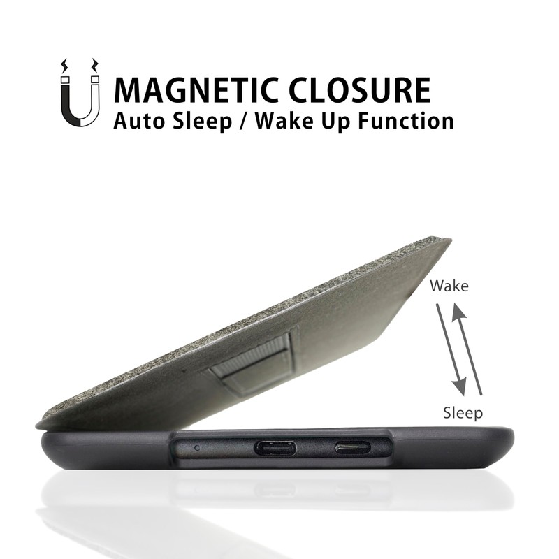- SCHLAF / WACH FUNKTION - Durch einen schmalen Magnetstreifen in dem Klapphülle, schließt das Cover zuverlässig und unterstützt die automatische Schlaffunktion des E-Readers. Beim Schließen des Deckels wird das Pad in den Ruhezustand versetzt und beim Öffnen wieder eingeschaltet.