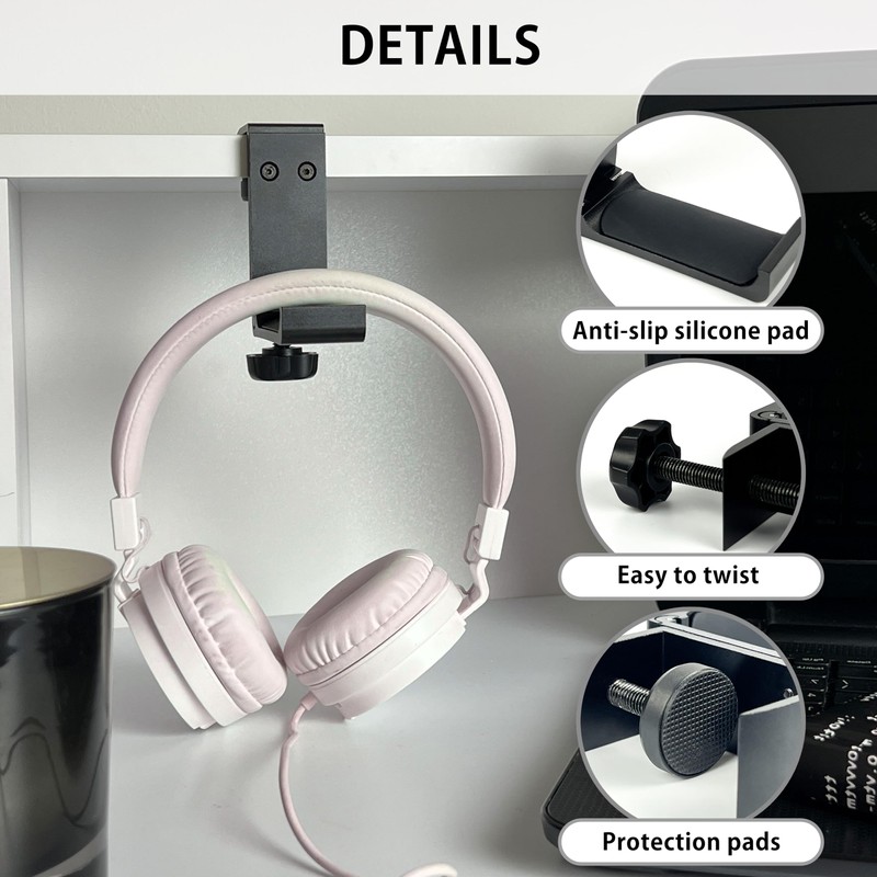 - DETAILS - You get a headphone hanger made of high-quality aluminium alloy. The handle is generously coated with silicone to ensure a secure grip and scratch protection for your headphones. The headset holder's carrying capacity is 6 KG.