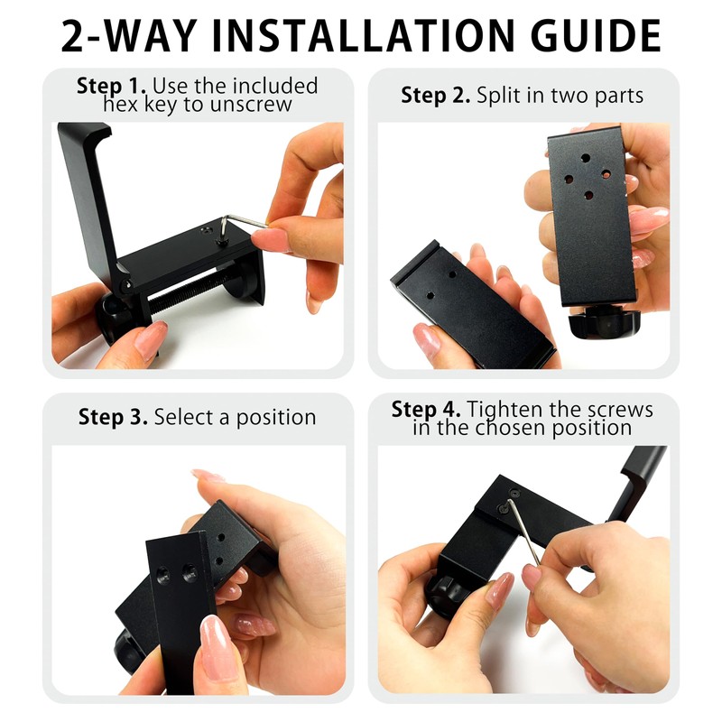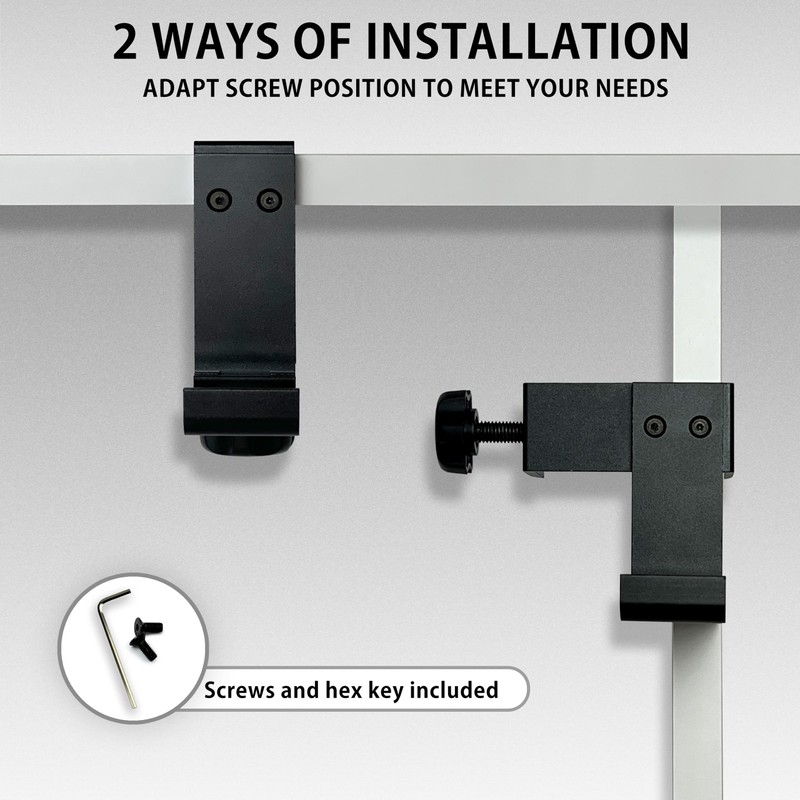 - INSTALLATION - The desktop mount is effortlessly attached to wooden tables or flat surfaces. Simply turn the integrated screwdrivers until the holder is securely fixed to your desk. Please note that the thickness of the surface should not exceed 5.8 cm.