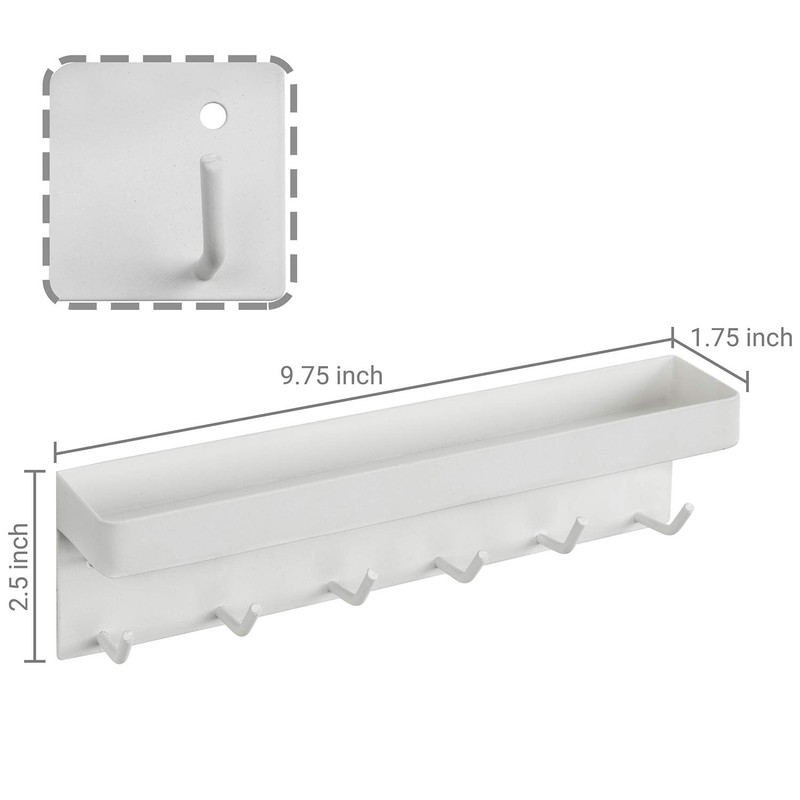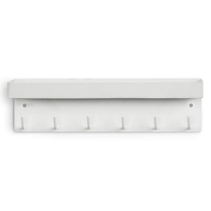 Keep your keys and lanyards organized in your entryway, kitchen or office with this wall mounted metal key rack with top shelf. This features 6 hanging hooks and a top shelf for storing mail and personal items, and can be easily mounted to wall surfaces with proper hardware (Mounting hardware not included). Not only can this wall sorter be used to store all your personal items in your entryway, it can be transformed to a jewelry and cosmetic holder in your bedroom or closet as well.