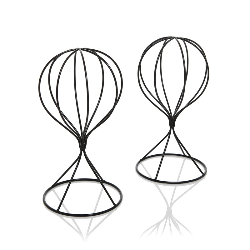 MyGift Soportes modernos para sombreros de metal, soportes de peluca decorativos de mesa, juego de 2, negro