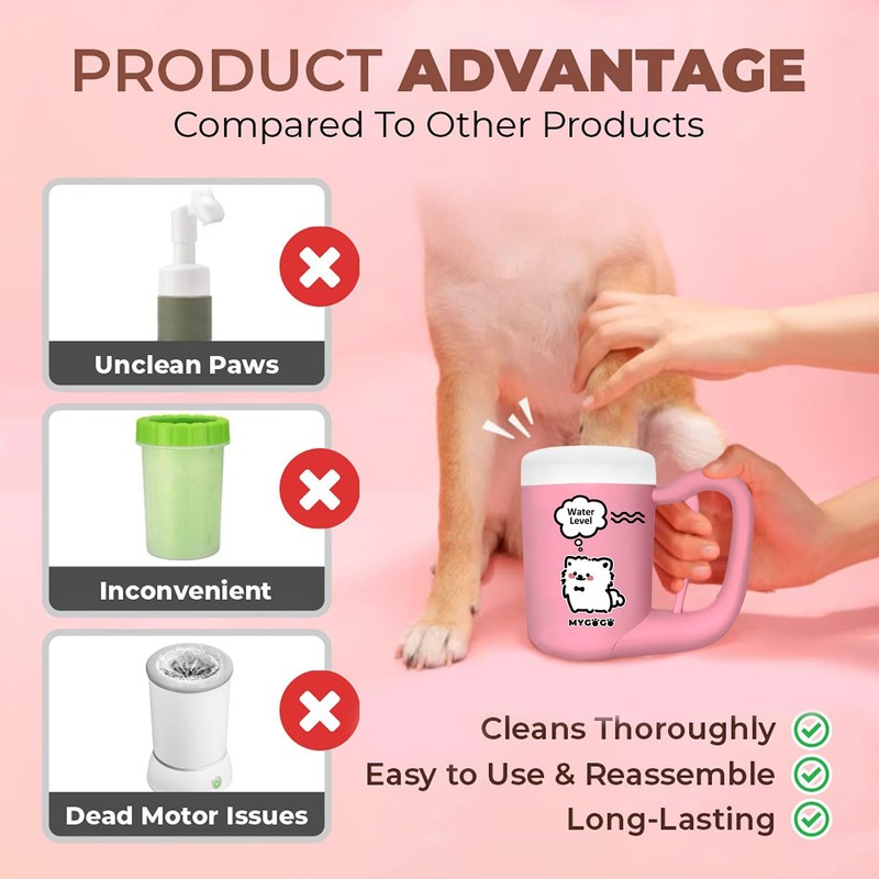 - HASSLE FREE: The MyGoGo Paw Washer is so much more convenient than manual cleaning. Let the product do the hard work for you!