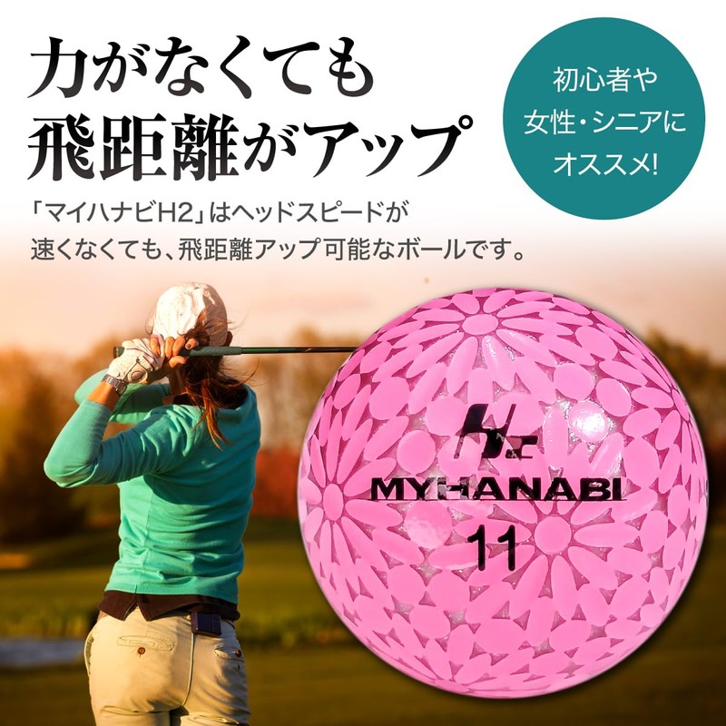 MYHANABI H2 Soft Distance 2nd Model Golf Balls Made in Japan (White Silver, 12 Pieces)