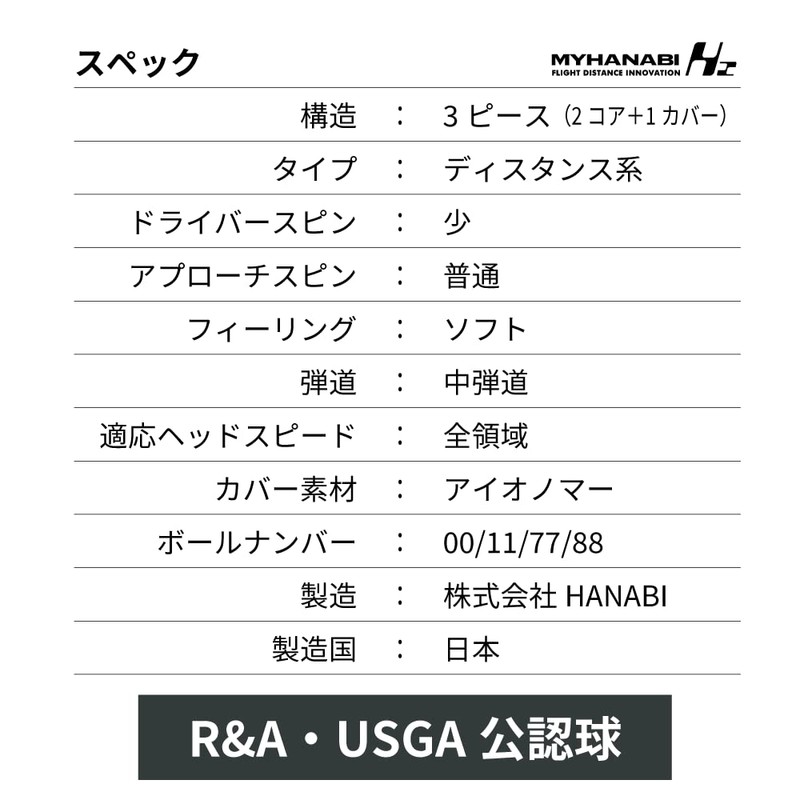 - Non-circular dimple golf balls (patented) 3 pieces (2 core + 1 cover) Distance type Cover: Ionomer Spin volume Feel: Soft Country of Origin: Japan R&A/USGA certified ball