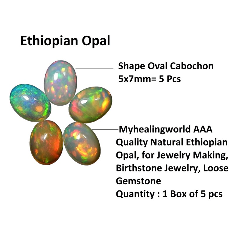 Myhealingworld AAA Quality Calibrated Natural Ethiopian Opal Mix Size Box, BOX 2 - (5x7 = 5 stone), Gemstone, ethiopian opal