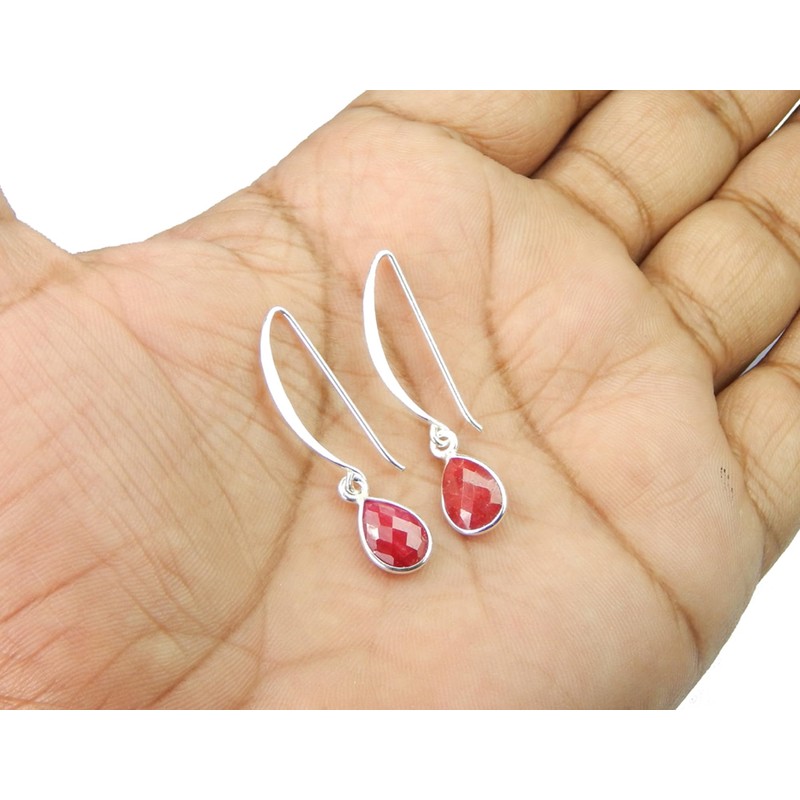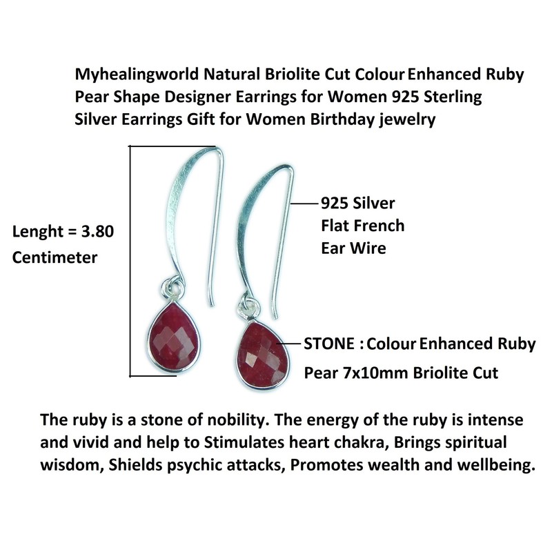 Myhealingworld Natural Briolite Cut Colour Enhanced Ruby Pear Shape Designer Earrings for Women 925 Sterling Silver Earrings Gift for Women Birthday jewelry (Quantity: 1 pair)