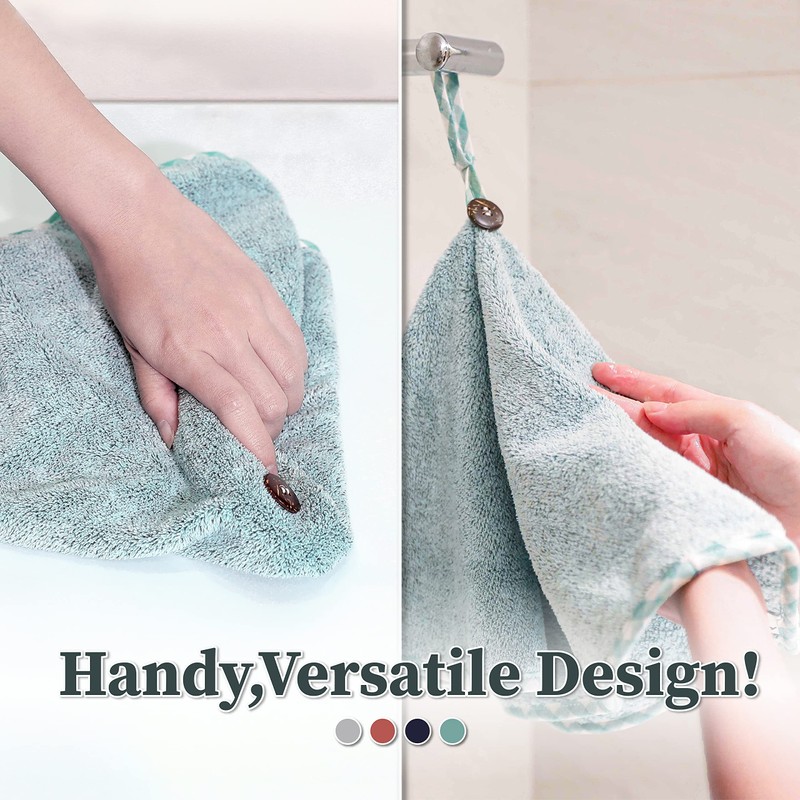 - ✔️ Luxuriously soft and gentle on hands! My body hanging kitchen towels, bath towels absorb water like a champ! ✔️ Made to hang! Designed to hang from the center button to provide a more luxurious surface to touch and squeeze! ✔️ Comes with 2 sizes of cotton loop to meet your needs!