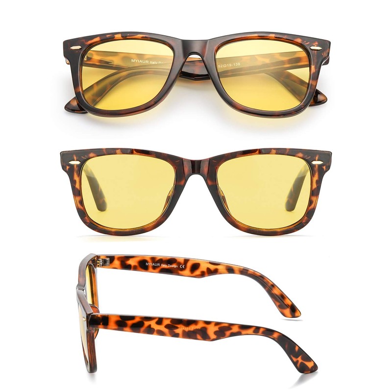 Myiaur Night Driving Anti Glare Glasses Yellow Polarized Lens for Foggy/Rainy/Cloudy/Nighttime - UVA UVB Protection (Leopard frame/yellow lens)
