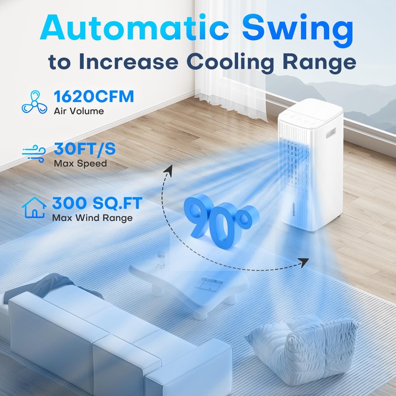 - ❄️【14-Inch Air Outlet & 90°Wider Oscillation】MYICY windowless air conditioner for bedroom features a 14-inch air outlet with 90° auto-swing for wide-angle airflow distribution. Delivering up to 1620 CFM, it quickly cools down your space with an effective cooling area of 300 sq.ft. When paired with your existing air conditioning system, it ensures even airflow and coolness in every corner—perfect for creating a comfortable environment in any room!